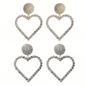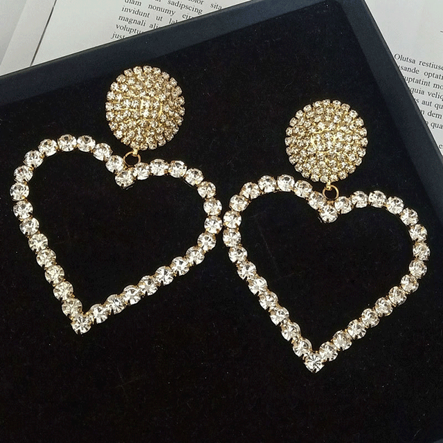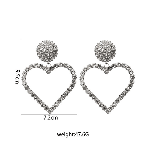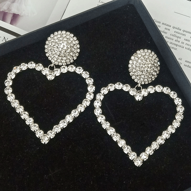 Full Rhinestone Heart Earrings Gold Silver Dangle Drop Earrings Must-Have for Fashion Insiders