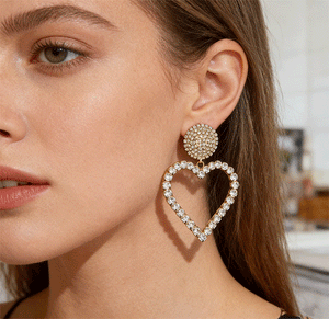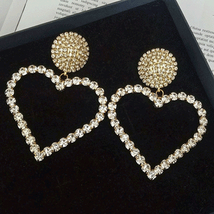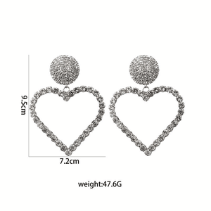 Step into the spotlight with our Celebrity Style Full Rhinestone Heart Dangle Earrings—the ultimate staple for fashion insiders! Crafted in timeless Gold and Silver finishes, these drop earrings feature fully paved sparkling rhinestones in a classic love heart shape, just like the styles adored by European and American stars. Lightweight yet eye-catching, they blend bold glamour with effortless versatility, perfect for elevating daily looks, party ensembles or chic office outfits. A must-have statement piece that adds a dazzling touch to any look—every fashionista’s essential jewelry box addition!(Crystal Diamond Alloy)