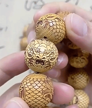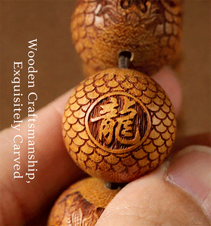 Golden Sandalwood Carved Dragon Bead Bracelet | Oriental Mystic Power Wenwan