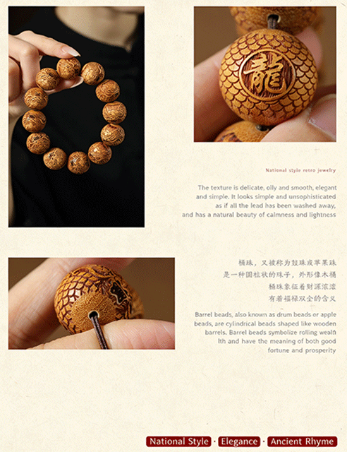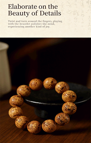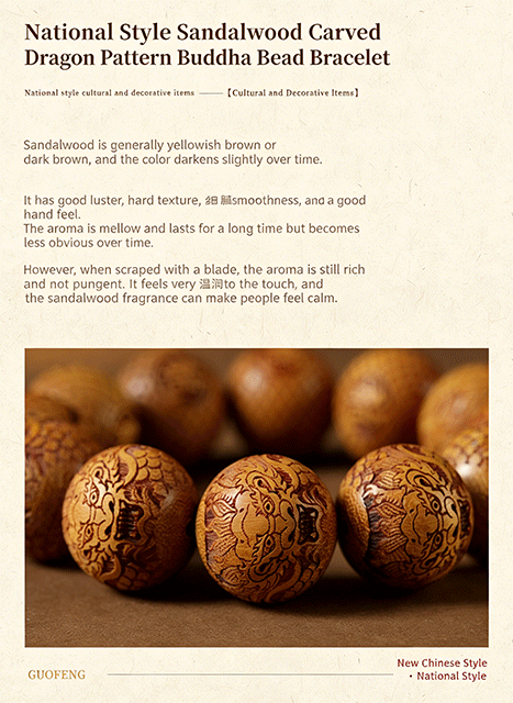 This Golden Sandalwood straight-grain prayer bead bracelet is infused with the seed of Oriental mystical power, centered on the auspicious Dragon King. Worn on the wrist, it wraps you in divine dragon aura, blessing you with physical and mental health, perpetual good fortune, prosperous wealth and a free heart. Exquisite straight-grain craftsmanship, natural sandalwood texture, the mystical power nourishes you silently with every twist.