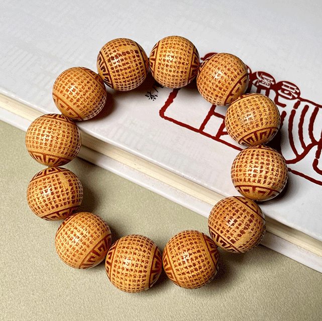 Oriental Spiritual Power Heart Sutra Bracelet - Red Sandalwood Six Paths Wood Huanghuali