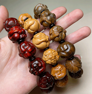 Green Sandalwood & High-Density Red Sandalwood Zodiac Bracelet | Oriental Mystic Power Wenwan