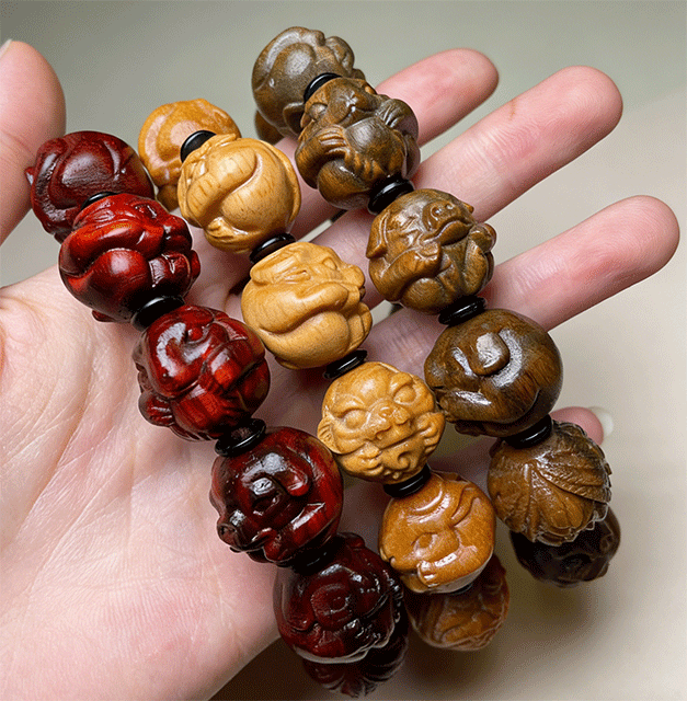 This sandalwood bracelet has incorporated the seeds of Oriental mysterious power. Carved with the auspicious forms of the nine sons of the Dragon King, it embodies the thousand-year-old charm of the Chinese dragon totem. The Dragon King presides over water and gathers blessings, protecting health and good fortune. Each of the nine sons possesses unique divine powers, gathering wealth, attracting auspiciousness, stabilizing fortunes, and safeguarding blessings. As the sandalwood beads flow on the wrist, they are surrounded by the aura of the divine dragon, carrying the wish for physical and mental health, gathering the good luck for prosperous wealth, and embodying the yearning for spiritual freedom. Wearing it brings the fortune and blessings of the dragon, accompanied by mysterious Oriental power, with auspiciousness always present, wealth and blessings arriving, and the heart returning to freedom.